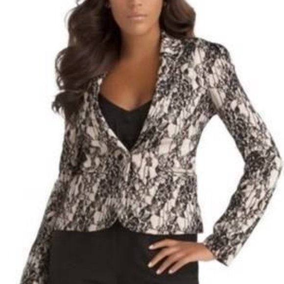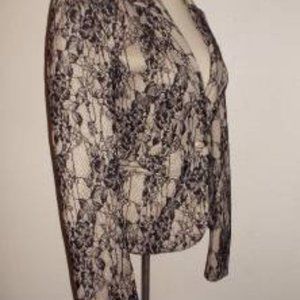 KARDASHIAN KOLLECTION MS SIZE LARGE BLACK LACE OVER NUDE SINGLE BUTTON BLAZER