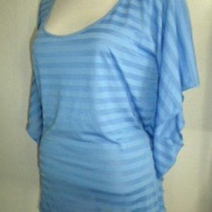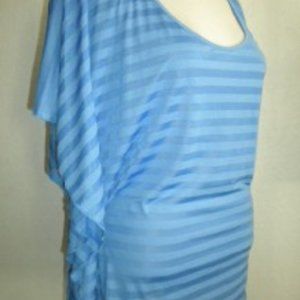 KARDASHIAN KOLLECTION SZ MEDIUM MARRAKESH BLUE STRIPED HI- LOW FASHION KNIT TOP