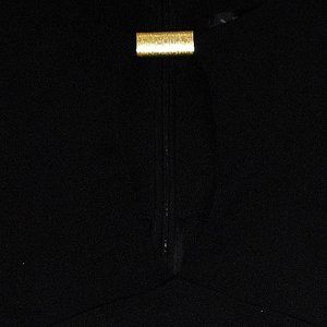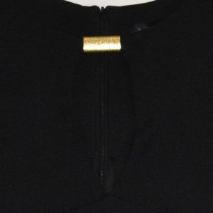 Kardasian Black dress w/ keyhole & gold accessory in the center.