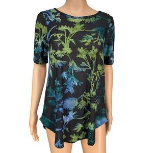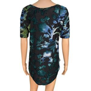 KAREN KANE BLACK GREEN FLORAL TOP BLOUSE TUNIC SIZE XS
