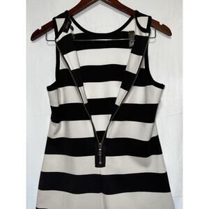 KAREN KANE Black/White Striped Sleeveless Exposed Back Zipper Dress~Size Small