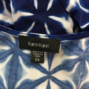 KAREN KANE Blue Kaleidoscope Stretch Jersey Top Plus 2X
