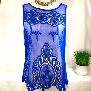 This sheer beauty can be worn with a tank top. It has beautiful embroidery throughout, and has a comfortable tank design cut.