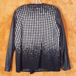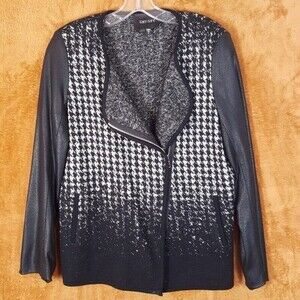 KAREN KANE Jacket Womens Medium Black Houndstooth Knit Moto Zip Textured Sleeve