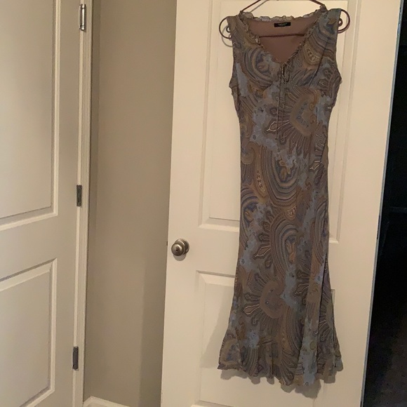 KAREN KANE LONG RUFFLE SLEEVELESS DRESS