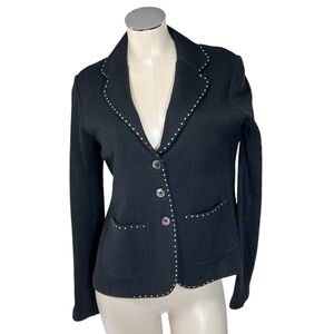 KAREN KANE Lifestyle Black Merino Wool Silver Studs Blazer Jacket Women's Size L