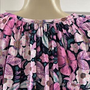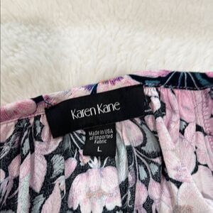 KAREN KANE PINK FLORAL PRINT TIE NECK DOLMAN BLOUSE.