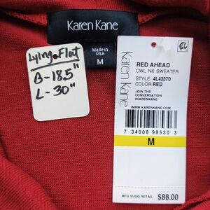 KAREN KANE Red Ahead Cowl Neck Sweater M Long Sleeve NWT With Defect!