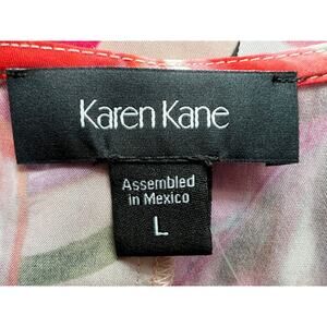 KAREN KANE TOP WOMENS SIZE LARGE TROPICAL PRINT FLARE HEM BLOUSE PINK NEW
