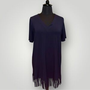 KAREN KANE V-Neck Fringe Dress - Navy Plus 1X