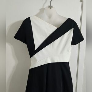 KAREN MILLEN Black and White Color Block Pencil Dress size 8