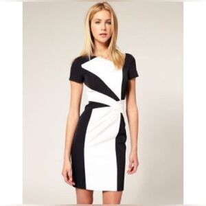 Karen millen black and white color block pencil dress size US 8