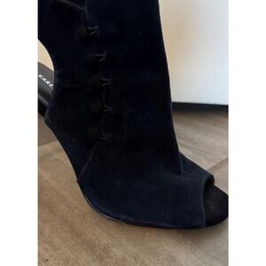 KAREN MILLEN NAVY SUEDE BUTTON UP BOOTIES HEELS SZ 8 (38)