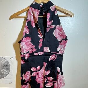 KAREN MILLEN Oriental Chinese Pink Floral Halter Top US 10