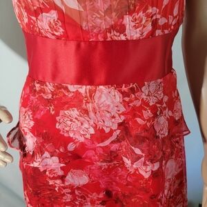 Elevate your style with our Karen Millen red floral tiered silk halter maxi dress.