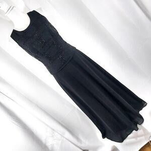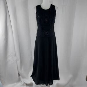 KAREN MILLER, NEW YORK! BLACK BEADED, EMBROIDERED 2 PC LOOK MAXI DRESS! SZ 6P