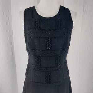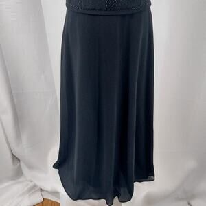This absolutely beautiful full length gown, dress is from Karen Miller, New York! In rich, saturated black, it has the look of 2 pieces, but is actually just one with a "top" embroidered and beaded in bugle beads! The "skirt" is a traditional A-LINE, all in a heavy chiffon-like fabric! Sleeveless, back zipper! Just stunning! Size 6P, worn once! Excellent! Superb EUC Condition! **ABSOLUTELY GUARANTEED CONDITION: EUC MINTY-EXCELLENT TO LIKE-NEW, by Lily @HauteClub!*** *Measurements always available on request!*