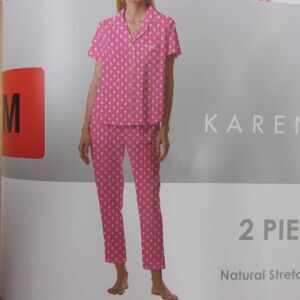 KAREN NEUBURGER Notch Collar 2-piece PJ Set M Pink White Loungewear Pajamas NWT