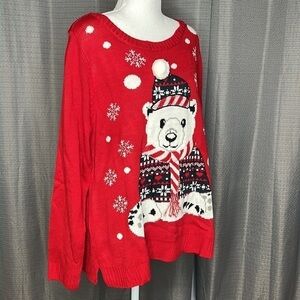 KAREN SCOTT 0X RED POLAR BEAR SWEATER NWT