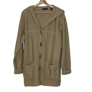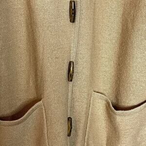 KAREN SCOTT 100% Wool Cardigan Large Women’s Hooded Camel Hair Cottagecore Jacket.Wrap yourself in the cozy embrace of this Karen Scott hooded cardigan, a must-have addition to your wardrobe. The 100% wool construction ensures warmth and comfort. Designed for women in a size large, this cardigan features a snug hood, convenient pockets, and a refined button accent that adds a touch of elegance to your casual or business attire. Pre-owned great condition. Measurements: pit to pit 24.5", length 32.5"