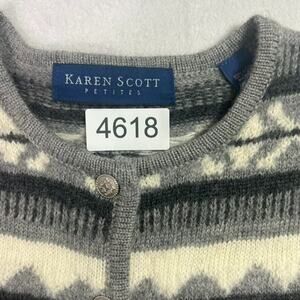 KAREN SCOTT Cardigan Sweater Women PL Wool Striped Aztec Pattern Button