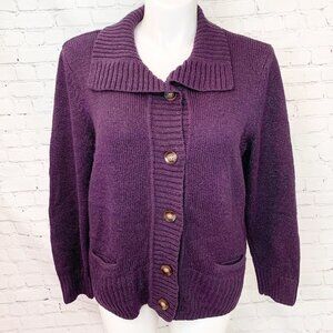 KAREN SCOTT DEEP PURPLE PLUM BUTTON UP CARDI - XL