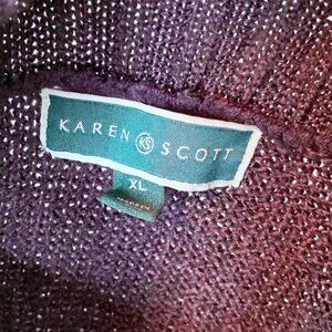 Gogeous and comfy! Karen Scott collared, button front cardigan sweater. Size XL. Beautiful deep purple/plum in color. Even has 2 front pockets! Excellent condition. 91% acrylic, 9% polyester. Measures 23.5" pit to pit and 28" long.