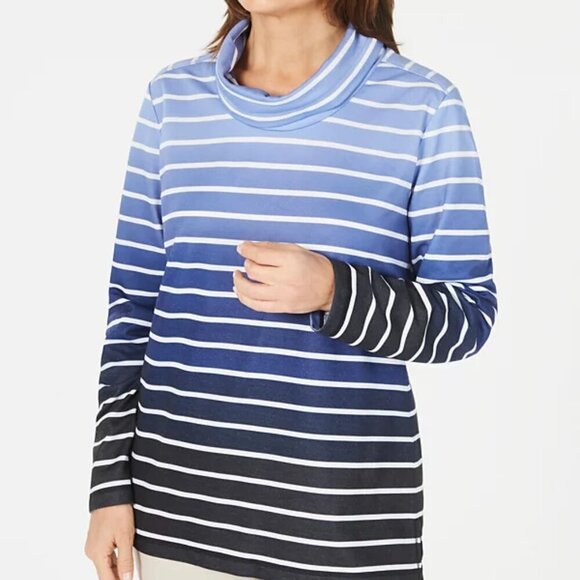 KAREN SCOTT Dip-dyed Striped Cowl Neck Sweatshirt XS