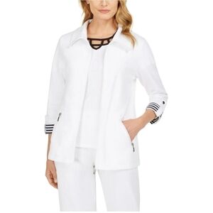 KAREN SCOTT French Terry Jacket Zip Front Cropped Sleeve Cardigan Women's Blazer