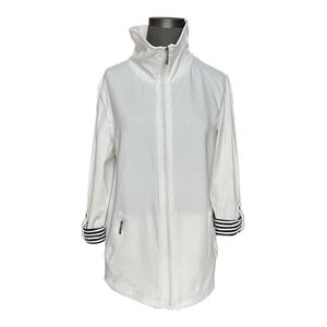 Introducing the KAREN SCOTT SPORT Women's Blazer, a chic French Terry Jacket with a zip front and cropped sleeves. Ideal for a stylish #womensoutfit, this blazer is crafted from a comfortable blend of 97% Cotton and 3% Spandex. Available in classic colors of white and navy blue, it combines #fashion with comfort.