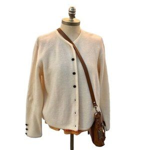KAREN SCOTT PETITE Ivory Wool Button Down Sweater