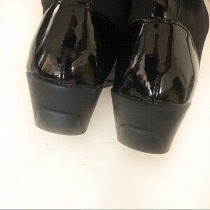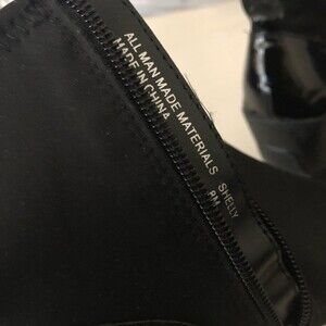 Comfortable fabric boots with shiny heel area. Side zippers for easy on and off. One small mark as shown in photo. Not at all noticeable when you are wearing it.