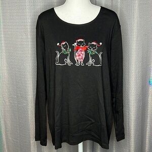 KAREN SCOTT WOMAN BLACK CHRISTMAS KITTY LONG SLEEVED HENLEY TSHIRT SIZE 1X NWT