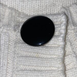 KAREN SCOTT cable knit cardigan long sleeve snap up with large decorative black buttons, creamy white color. Soft, thick, cozy, warm and versatile.