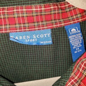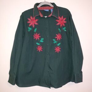 KAREN SCOTT SPORT WOMAN CHRISTMAS POINSETTIA HOLIDAY BUTTON DOWN SIZE 2X