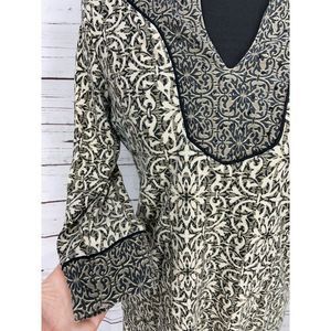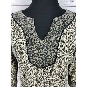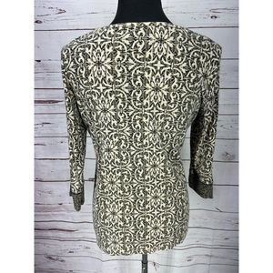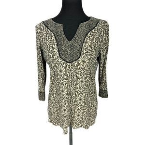 KAREN SCOTT Women's Top Tunic Brown Geometric Print V Neck 3/4 Sleeve Studded Women's Plus Size Small ~This Tunic is Super Cute & Comfortable