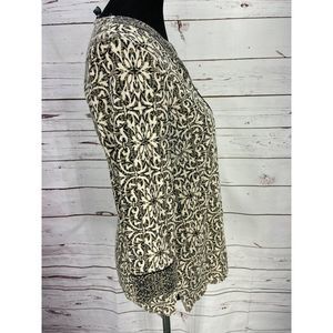 KAREN SCOTT Women's Tunic black/cream Geo Print Studded V Neck 3/4 Sleeve Top Si