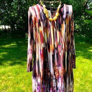 Beautiful abstract colors-hues of purple, burnt orange, teals, etc. against a cream backdrop