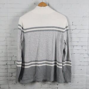 KAREN SCOTT GREY STRIPE LONG SLEEVE 1/4 ZIP UP PULL OVER SWEATER SIZE MEDIUM