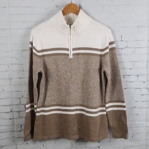 KAREN SCOTT TAN STRIPE LONG SLEEVE 1/4 ZIP UP PULL OVER SWEATER SIZE MEDIUM