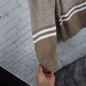 TAN STRIPE LONG SLEEVE 1/4 ZIP UP PULL OVER SWEATER SIZE MEDIUM BY KAREN SCOTT PRE OWNED LIKE NEW CONDITION