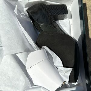 KAREN SCOTT Womens Black Mixed Media Two Toned Goring Padded Tillen Square Toe Block Heels