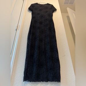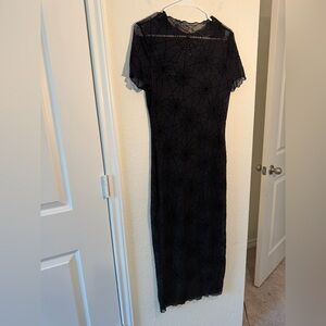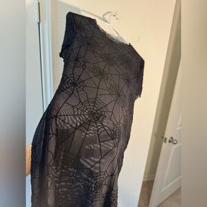 KARFRI Velvet Spider Web Print Bodycon Dress Halloween Transparent Mesh Medium