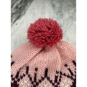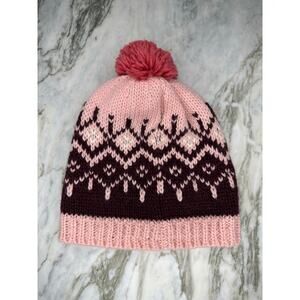 Features a fair isle knit pattern with pom pom on top. Fleece lined.