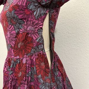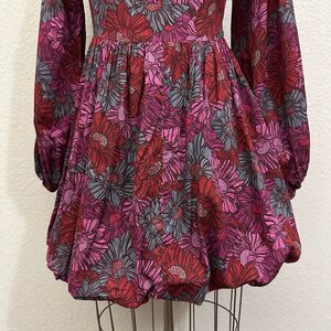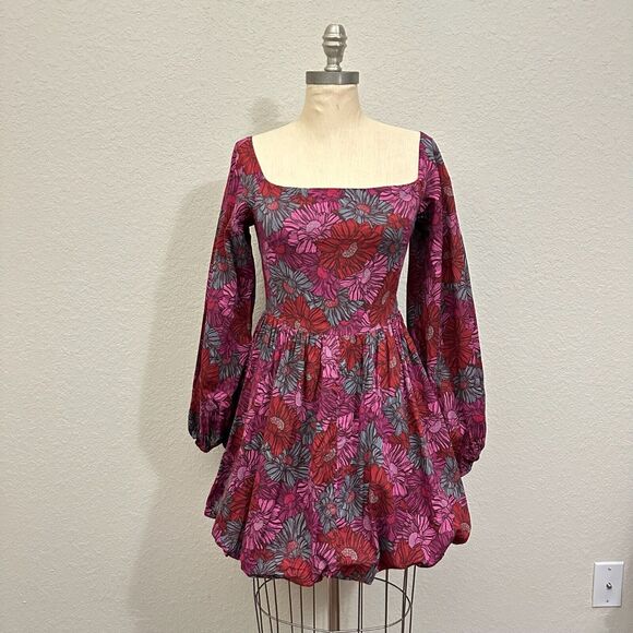 KARIELLA Puff Sleeve and Hem Mini Dress in Multi Floral Print Square Neck Sz M W9712
