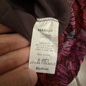 This beautiful Kariella mini dress in size M features a stunning multicolor floral print and a square neckline with long puff sleeves. The dress has a zip closure and a hemline that adds a touch of elegance to the overall look. Perfect for any occasion, whether it's a wedding, party, or casual outing, this dress is made of 100% cotton and is lightweight, making it ideal for summer, fall, or spring. The dress is easy to care for since it is hand wash only and comes with accents such as a zipper. It is lined and has a vintage-inspired style that is not only fashionable but also timeless. This dress is a must-have for any woman who wants to make a statement and feel confident in any setting.
