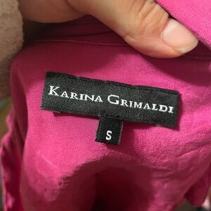 KARINA GRIMALDI HOT PINK SILK SCOOP NECK BLOUSE