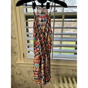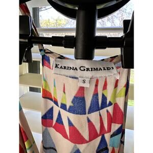 This KARINA GRIMALDI Jack Rompers In Circus is a stylish and versatile piece that will make you stand out at any occasion. With a halter neckline and sleeveless design, it's perfect for warmer weather and can be dressed up or down. The geometric pattern in multicolor is eye-catching and unique, while the rayon fabric provides comfort and durability.