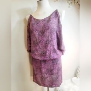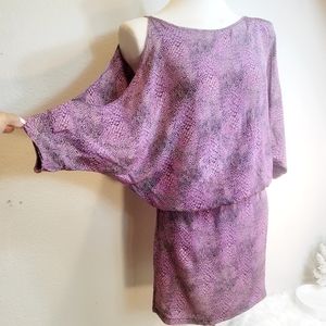 Karina Grimaldi Purple Silk Snake Print Cold Shoulder Mini Dress