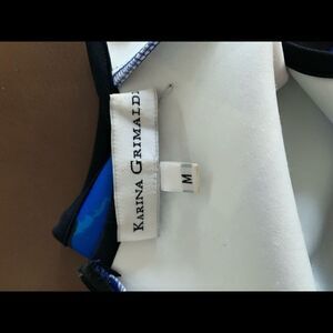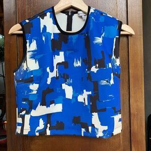 KARINA Grimaldi Blue white black watercolor print crop top scuba material medium